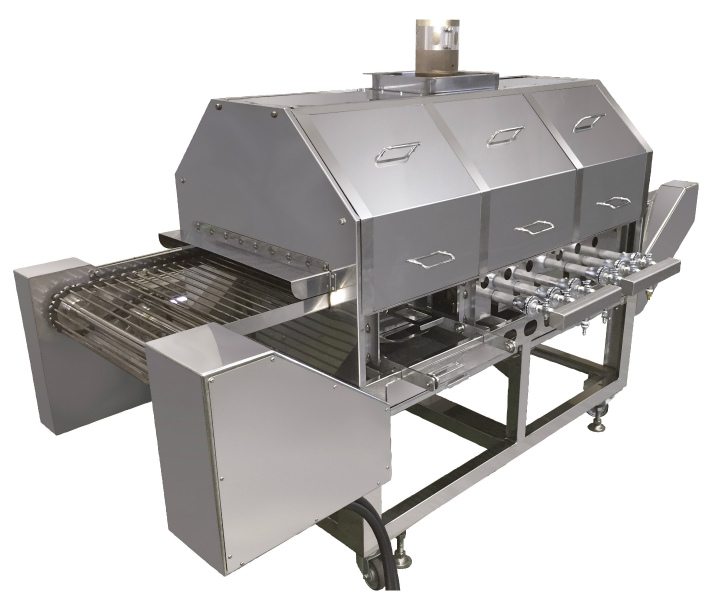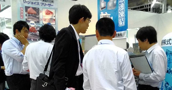 弊社ブースにおきましては、液体凍結機を中心に、焼成機器である「コンベア式炙り機」「連続式過熱水蒸気調理器」を出品いたしました。