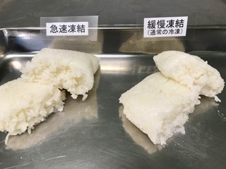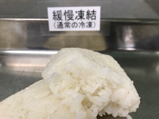 今回は、液体急速凍結機で急速冷凍したご飯と、通常の冷凍庫(緩慢冷凍)で冷凍したご飯を、