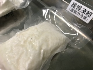 -35℃で急速に冷凍されて真空パックが白濁しています。(解凍すると元の透明に戻ります)