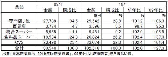 お惣菜、と言うとなんとなく「デパ地下」をイメージする方が多いかもしれませんが、むしろスーパーやコンビニエンスストアでの売り上げが伸びています。